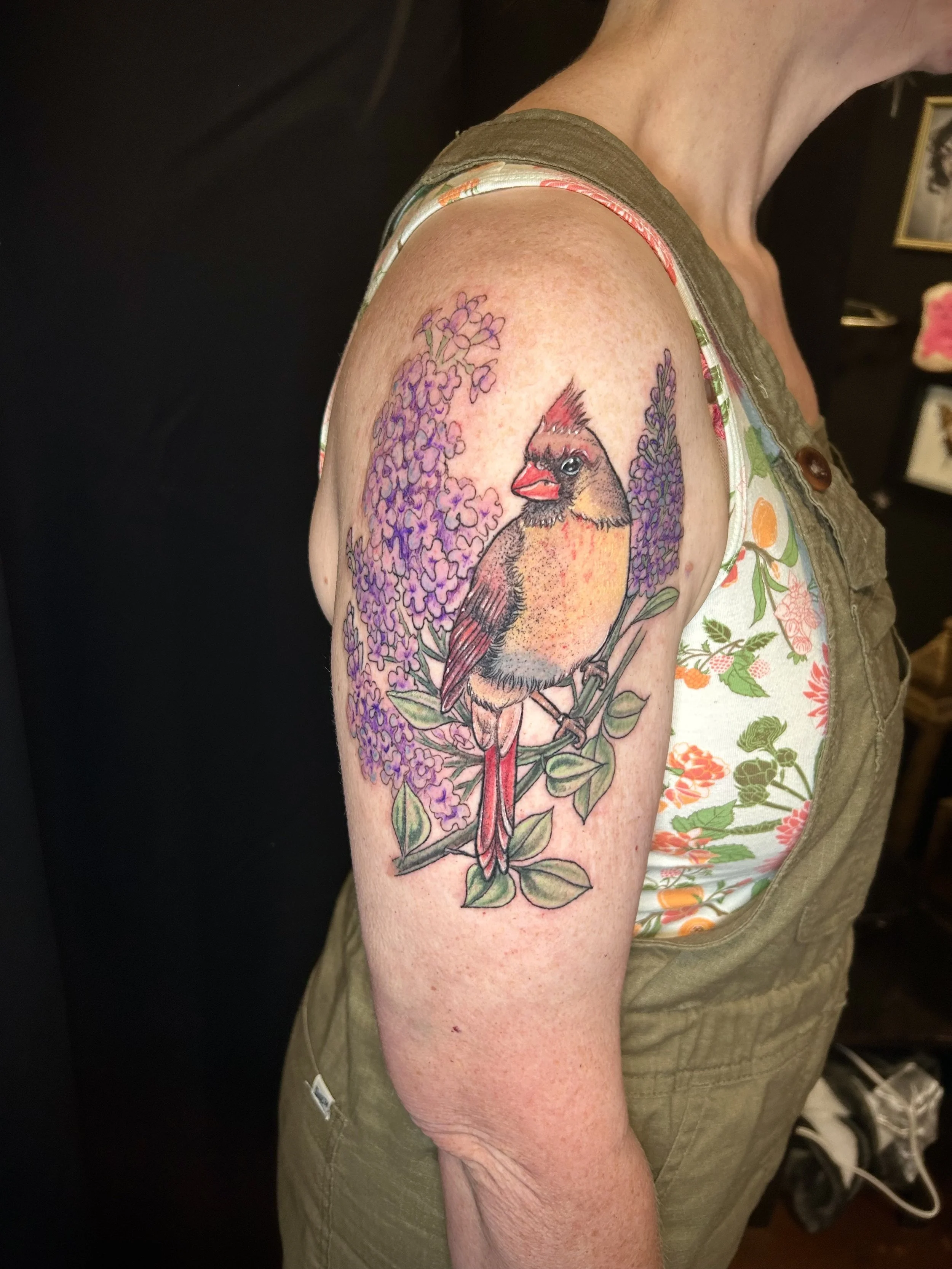 My name is Cara Smith and I have been tattooing since 2019. My style revolves around black and gray dot work, neotraditional, and full color floral. The more nature/floral tattoos the better! I also love neotraditional pet portraits, lady faces, and coverups/reworks of existing tattoos. I am open to other styles as well, so feel free to bring me your ideas and we can discuss your design!